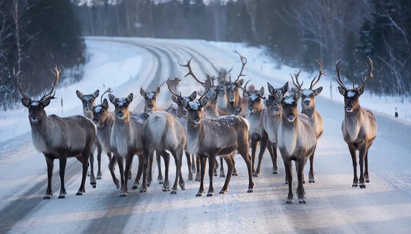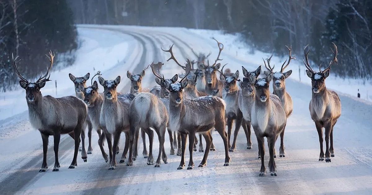 Стада оленей полностью заблокировали автомобильную трассу, совершая ежегодную миграцию к высокогорным пастбищам. Водители были вынуждены ждать неопределенное количество времени.