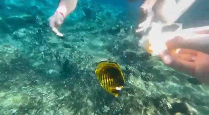 Агрессивный обитатель местных рифов пытался ударить туриста плавником.