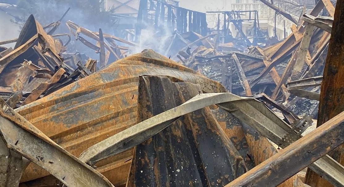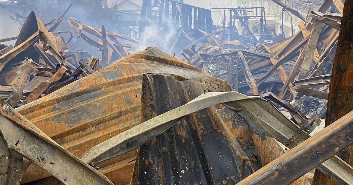 На фотографиях запечатлено сгоревшее дотла кафе.