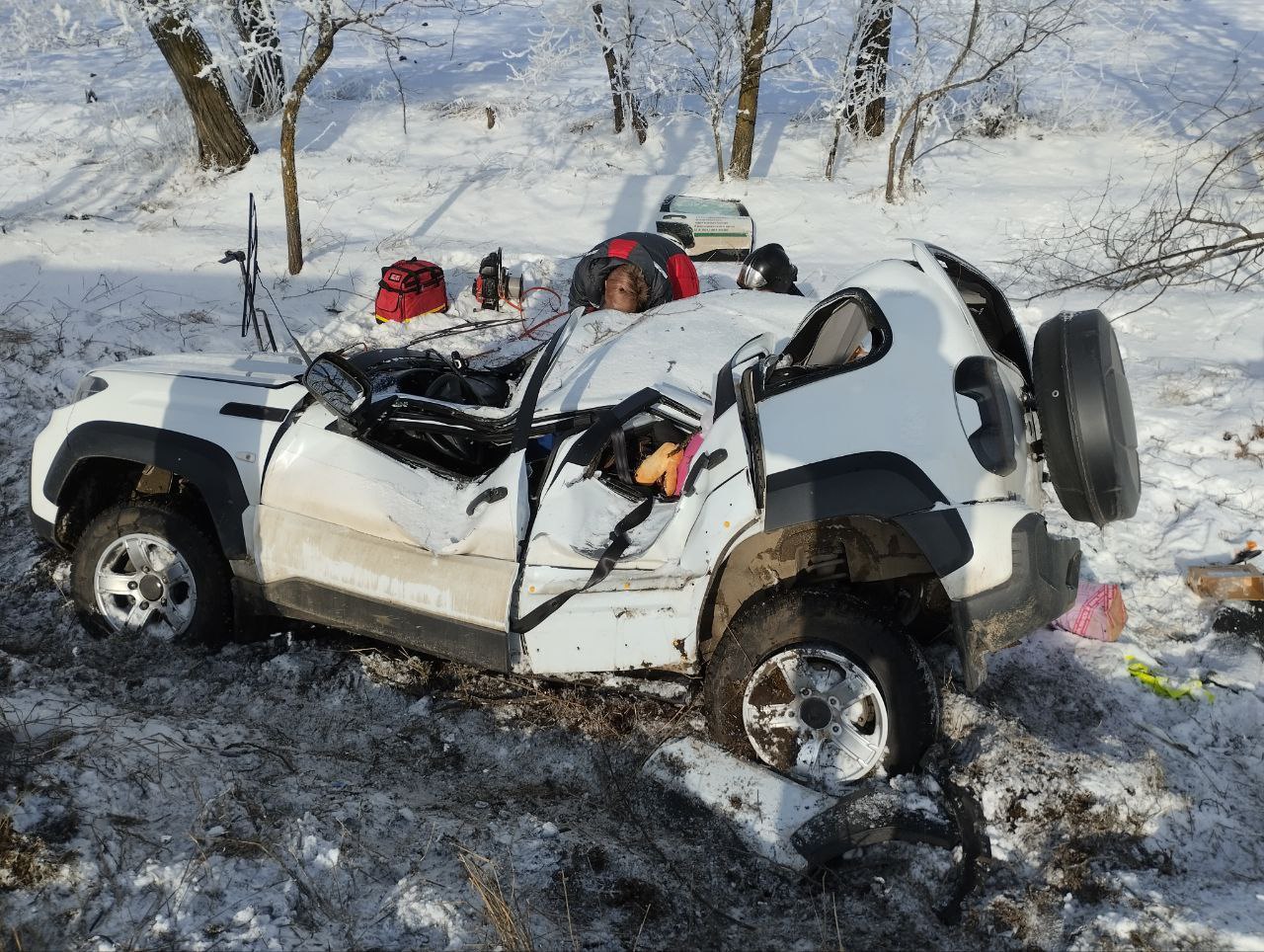На ФАД «Кавказ» 62-летний водитель Нивы двигался на автомобиле. Водитель не справился с управлением и автомобиль выбросило на обочину в лесополосу. Машину смяло, как консервную банку.