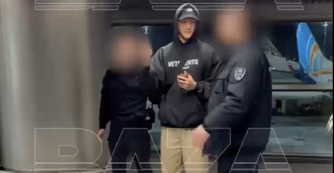 Опубликованы кадры задержания комика и телеведущего Нурлана Сабурова в столичном аэропорту Внуково. Видео выложили в МАХ телеканала «Краснодар» со ссылкой на BAZA.
