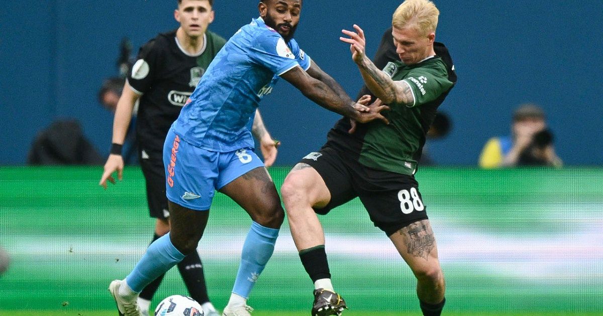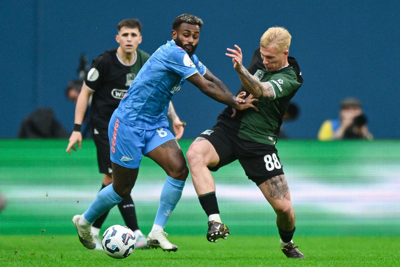 По итогам первого тайма «Зенит» ведет со счетом 2:1. Впереди – вторая половина встречи.