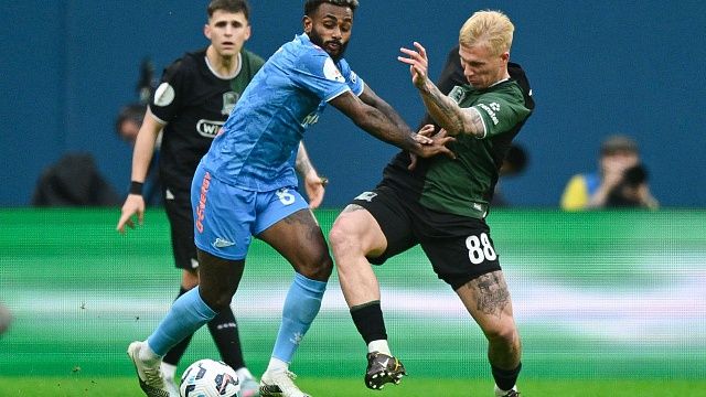 Прошел первый тайм в 24-го тура между «Краснодаром» и «Зенитом». На 16-й минуте счёт в матче открыл Никита Кривцов.