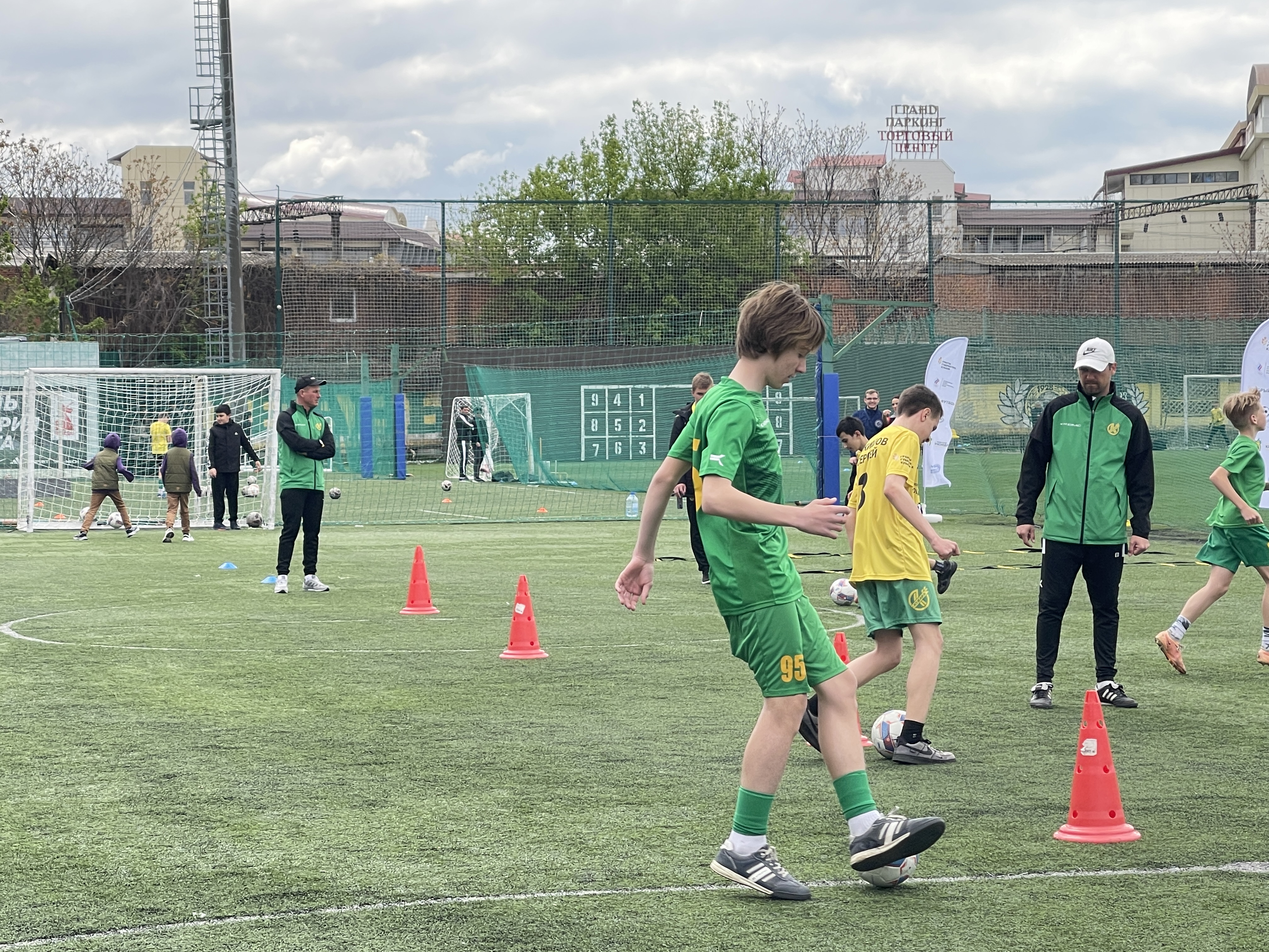 На стадионе «Кубань» 16 апреля состоялось итоговое тренировочное занятие в рамках инклюзивного спортивного проекта «Добрый футбол». Для участников, среди которых — школьники с ограниченными возможностями здоровья, это стало первым опытом занятий на открытом футбольном поле, максимально приближенном к реальным игровым условиям.