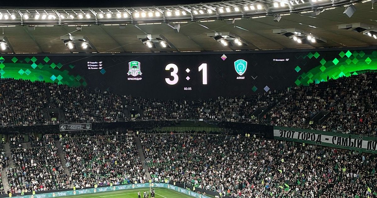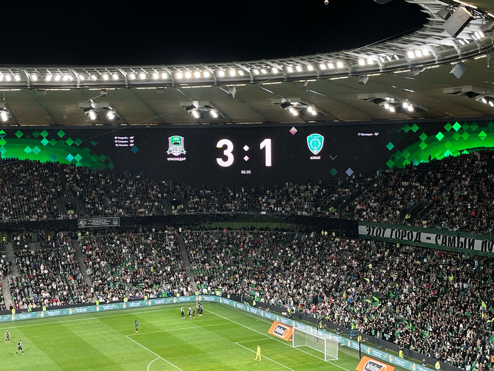 Менее чем через две минуты игроки «Краснодара» решили, что нужно увеличить преимущество и перешли в нападение. На 80-й минуте третий мяч в ворота гостей забил Кевин Ленини.