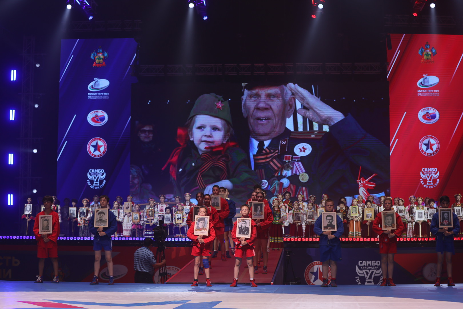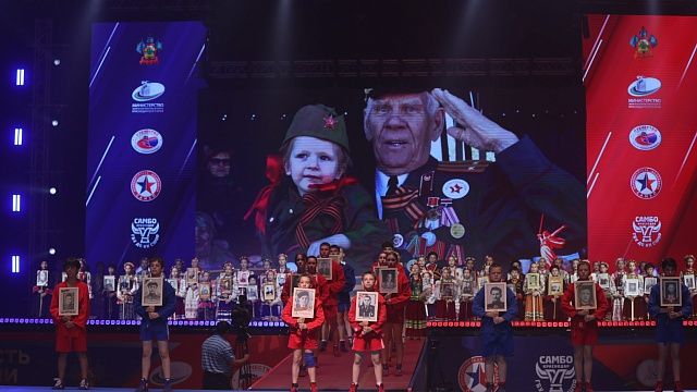 Перед началом поединков спортсмены и творческие коллективы Краснодара прошли в составе «Бессмертного полка» с портретами родственников — участников войны.