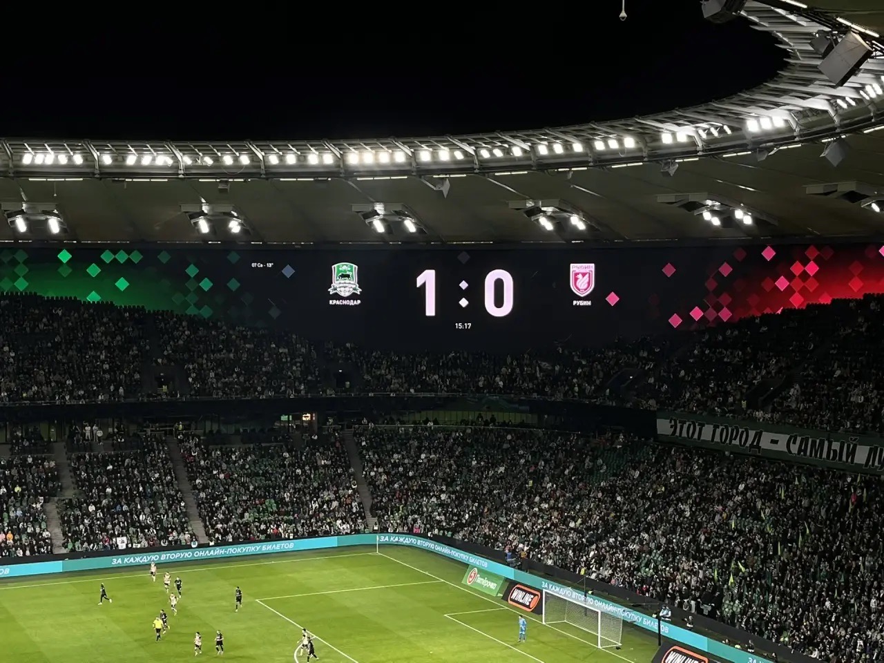 В рамках матча 13-го тура РПЛ между «Краснодаром» и «Рубином» забит первый мяч. На 13-й минуте действием отметился Виктор Са.