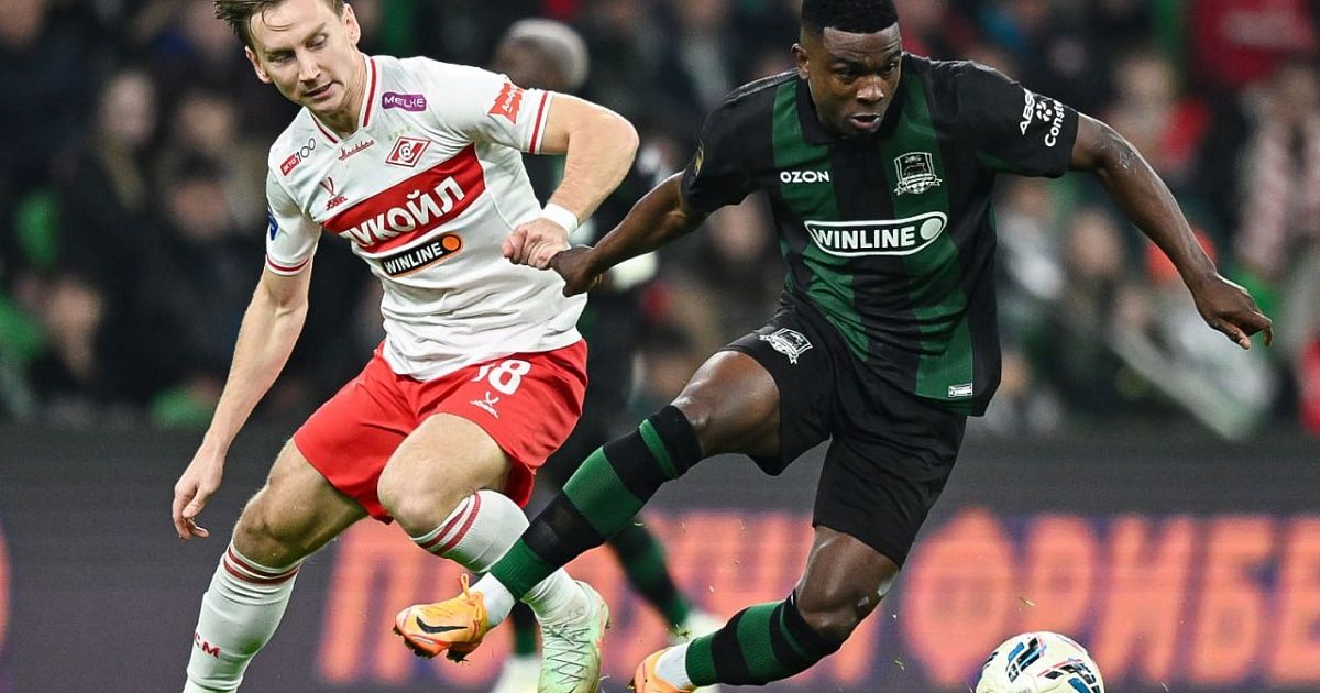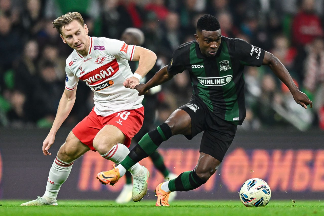 Напомним, Александр Черников открыл счёт в матче «Краснодар» – «Спартак». А теперь уже удаленный Кордоба забил второй гол.