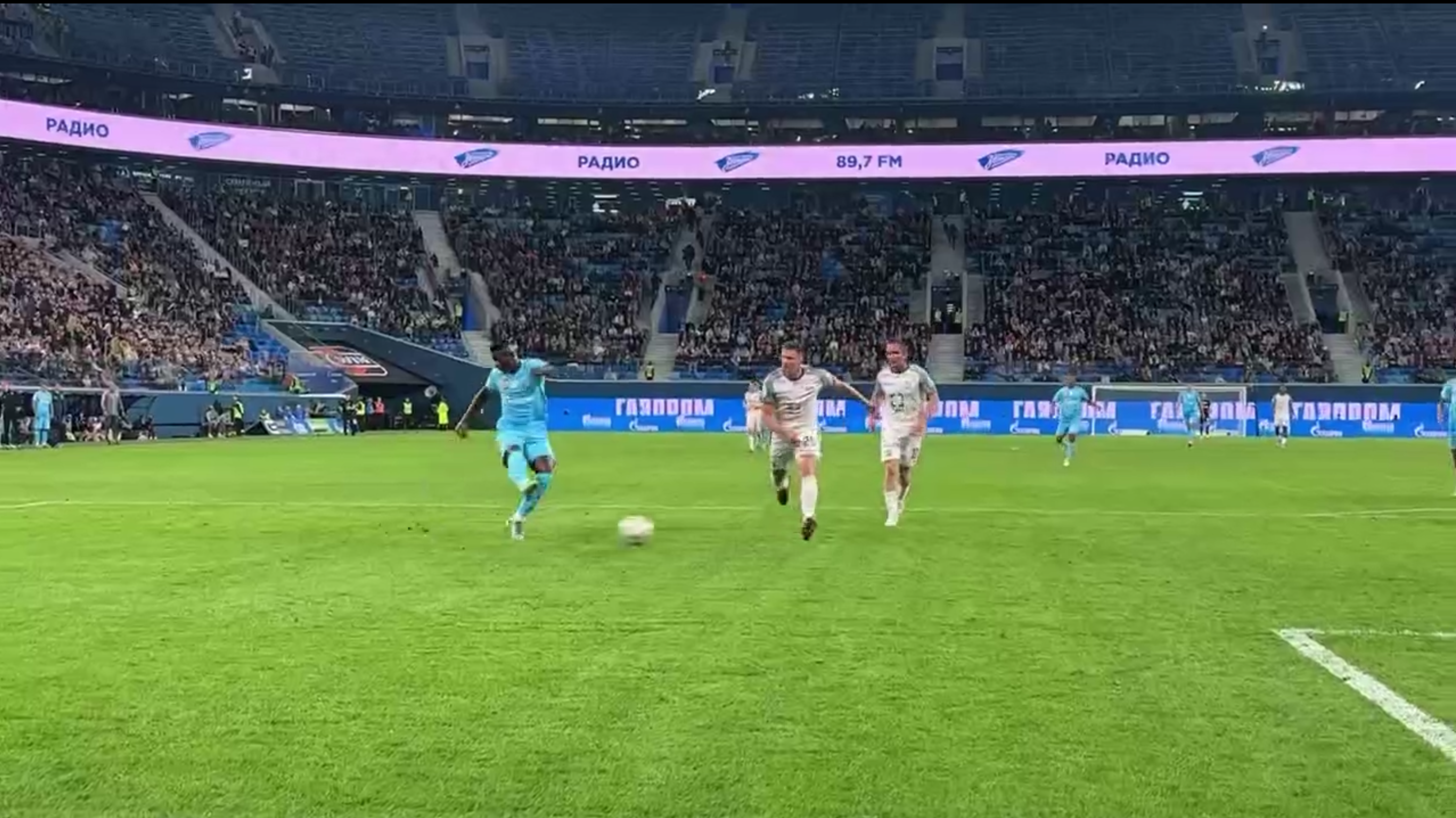После взятия ворот игра возобновилась с центра поля. Когда трансляция вернулась в прямой эфир, голкипер «Зенита» Денис Адамов уже вступал в игру, фиксируя подачу соперника.