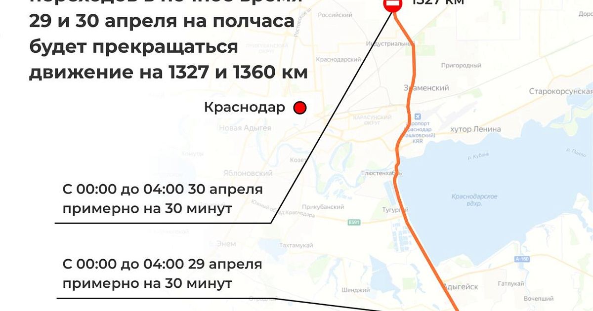 Аналогичные работы проведут в ночь с 29 на 30 апреля на 1327-м километре дороги. Здесь также ожидается кратковременное прекращение движения в ночные часы.