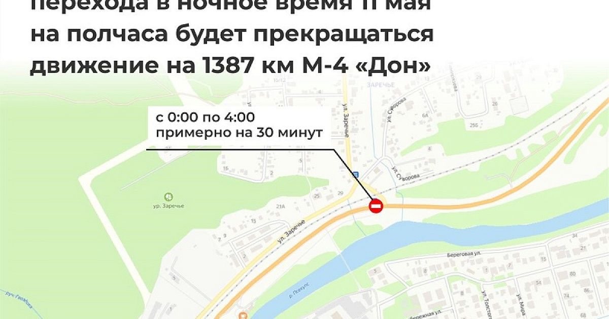 В Горячем Ключе ночью с 10 на 11 мая на 1387 км трассы М-4 «Дон» перекроют движение, сообщили в пресс-службе ГК «Автодор».