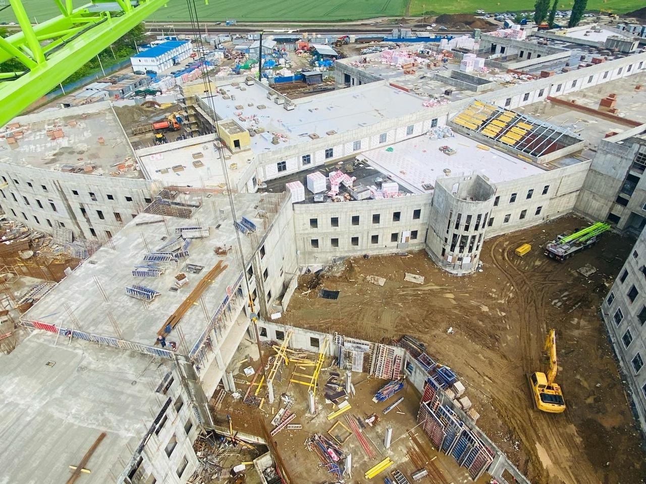 На данный момент рабочие обустраивают кровлю, фасады и монтируют инженерные системы.