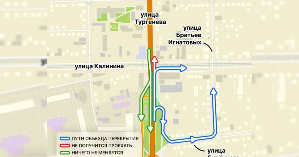 Изменится схема движения автомобилей. С 20 июня по 4 июля проезд по Тургенева в сторону города будет закрыт.