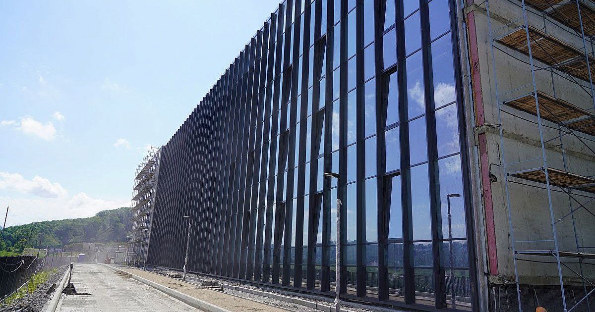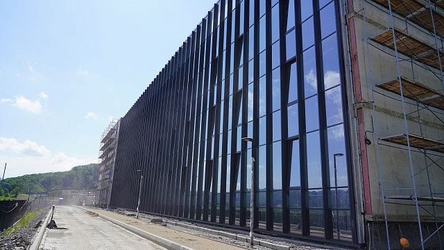 На текущий момент строители активно занимаются прокладкой внутренних и наружных инженерных сетей. Кроме того, ведутся работы по отделке фасадов здания, устройству кровли и монтажу вентиляционного оборудования. Параллельно с этим осуществляется благоустройство прилегающей территории. По предварительным оценкам, общая готовность объекта составляет 84%.