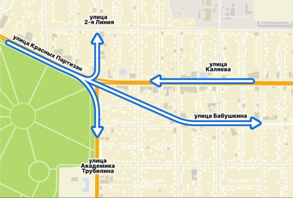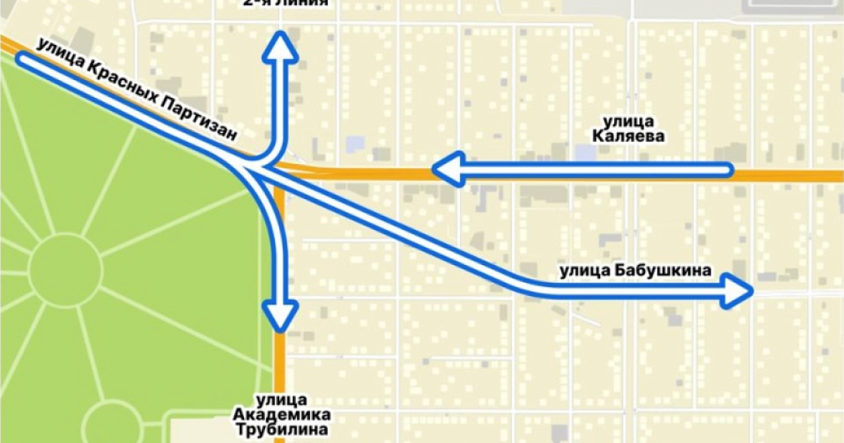 Второй — с 18 по 25 июля: объезд также через ул. им. Бабушкина, сквозной проезд останется закрытым, а поворот с ул. им. Каляева в сторону ул. Бабушкина будет возможен только направо.
