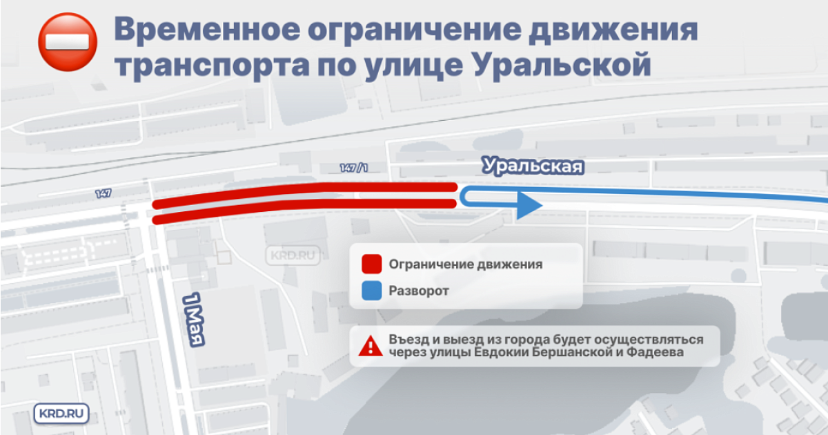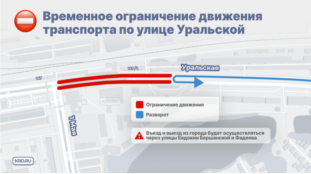 Ограничение продлится с 2:00 до 4:00. Въезд и выезд из краевого центра будут осуществляться через улицы Бершанской и Фадеева.