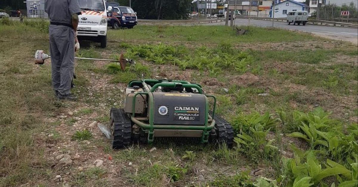 Напомним, в прошлом году в Горячем Ключе появился робот-косильщик. Преимущества робота — он может заменить десяток сотрудников с обычными косилками, при этом обладает высокой проходимостью и устойчивостью. Благодаря гусеницам робот может работать в труднодоступных местах.