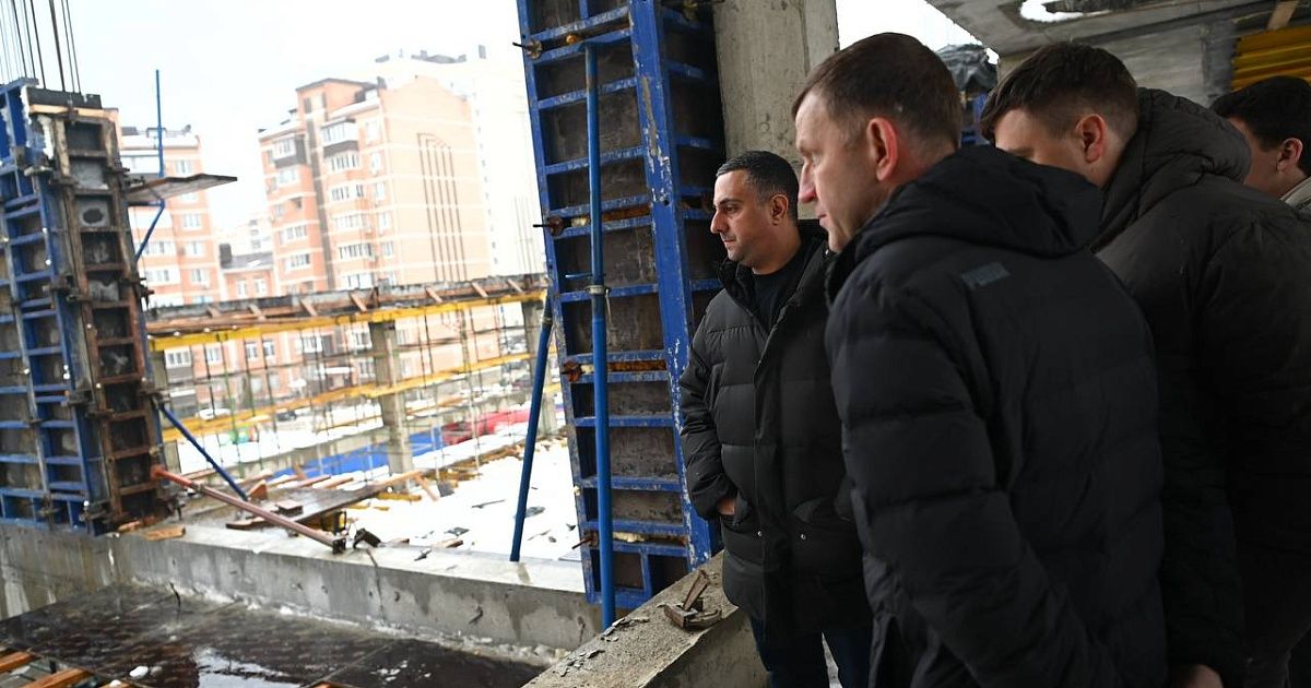 В Краснодаре продолжается строительство многофункционального физкультурно-оздоровительного комплекса на улице Домбайской, 8/1. Ход работ и степень готовности объекта оценил глава города Евгений Наумов, отметив серьезное отставание подрядчика от первоначальных сроков.