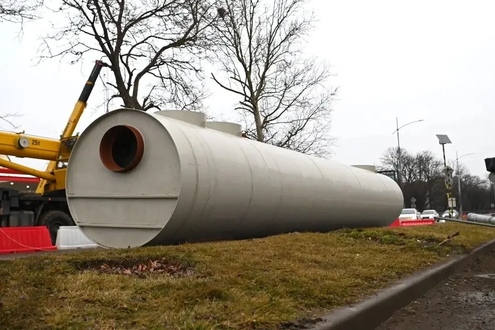 На объекте уже демонтированы три пролета из четырех, завершены монолитно-бетонные работы на двух подпорных стенах, еще на двух опорах устанавливают сваи. Параллельно ведется переустройство сетей водоснабжения и связи, начата прокладка ливневой канализации по разделительной полосе. Днем на строительной площадке работают более 100 человек, ночью — около 30.